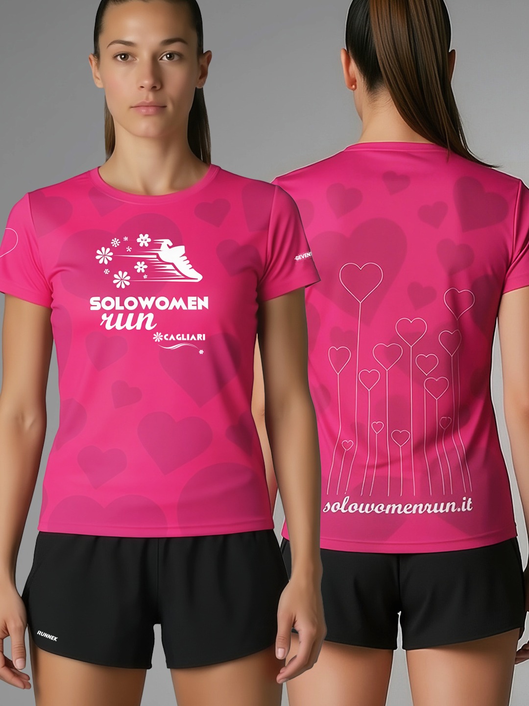 In una delle prime edizioni della #Cagliari SoloWomenRun un gruppo di amiche si è presentato portando alcuni palloncini a forma di cuore, per un’amica scomparsa, che simbolicamente, quel giorno, era presente insieme a loro. Da allora sono state tante le iniziative realizzate dalle donne della Cagliari SoloWomenRun per ricordare sorelle, amiche, colleghe che non ci sono più. A tutte loro dedichiamo la t-shirt ufficiale 2026, proprio con quei cuori che in tante porterete vicine l’8 marzo, correndo o camminando.
